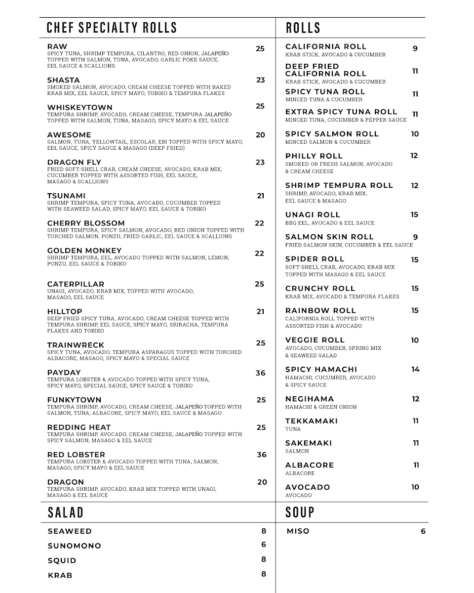 The true star here is undoubtedly the menu, which offers an impressive array of sushi and specialty rolls. Among the top picks is the OMG Roll, featuring a delightful trio of tuna, avocado, and cucumber, artfully topped with unagi, scallop, and masago, finished with a drizzle of spicy mayo and unagi sauce. At US$25.00, it’s a marvel that promises to tantalize your taste buds. Additionally, the RAW Spicy Tuna Roll and Whiskeytown Tempura Shrimp Roll stand out, each carefully crafted and bursting with fresh ingredients. Diners like San Saechao have praised the sushi as "the best I’ve ever had".
